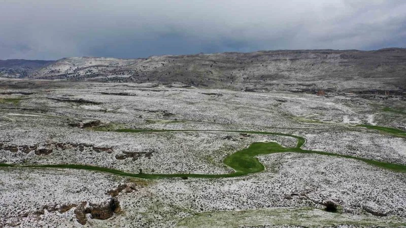 Mersin’in Erdemli ilçesinin yüksek kesimlerinde Mayıs ayında kar yağışı ve yer yer dolu yağışı etkili oldu. Evdilek Yaylası’nın bulunduğu Toros Dağları’nın etekleri beyaz örtüye bürünürken, Mayıs’ta ortaya çıkan eşsiz manzara dron ile görüntülendi.
