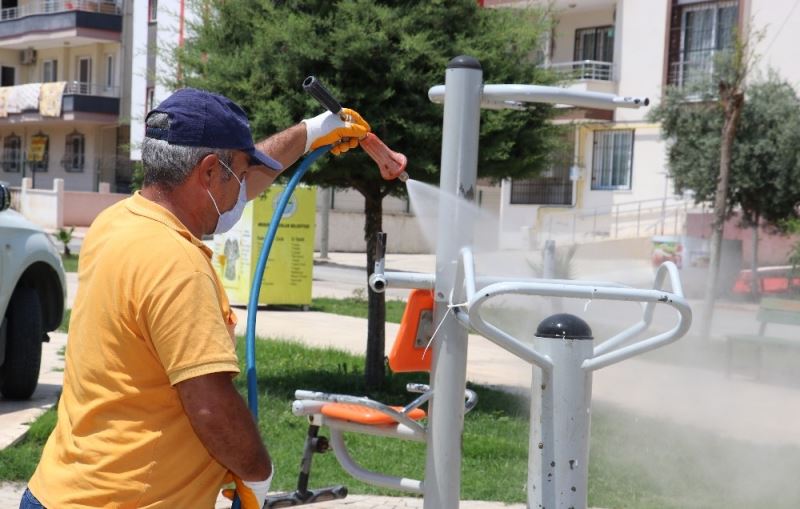 Toroslar Belediyesi, ilçe genelindeki park ve yeşil alanları normalleşme süreciyle birlikte dezenfekte ederek, vatandaşlara daha sağlıklı ve güvenli bir ortam sunuyor.