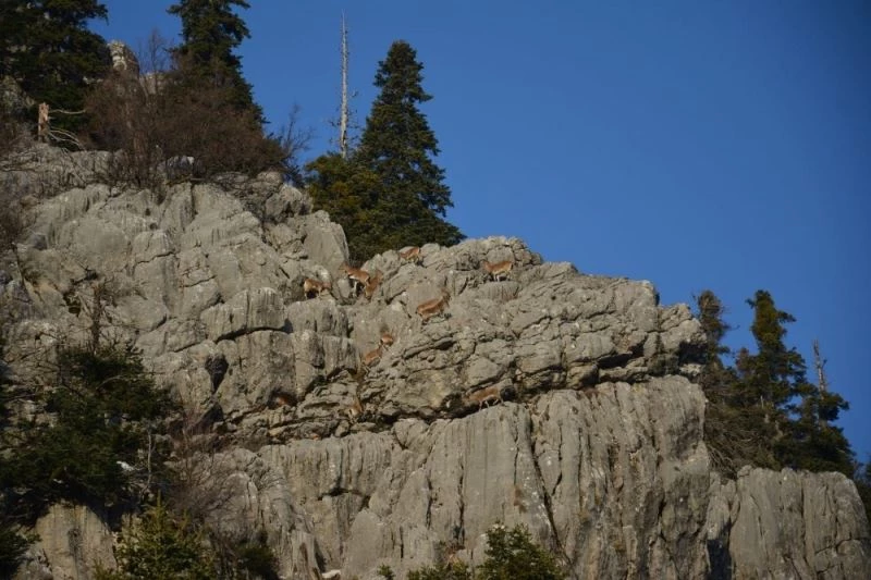 Nesli tükenme tehlikesi altında olan türlerin kırmızı listesinde bulunan dağ keçileri, Konya Antalya sınırlarında bulunan Toros Dağlarının yüksek kesimlerindeki sarp kayalıklarda görüntülendi.