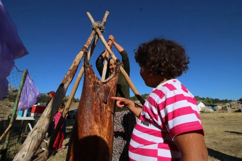 Antalya’nın Akseki ilçesinden yaz aylarında Konya’nın Seydişehir ilçesi sınırlarında Toros Dağları eteklerinde bulunan Karakışla yaylasına göç eden Yörükler, asırlardır gelenek haline gelen "tuluk"ta ayran dövme ve yağ çıkarma işlemine devam ediyor.