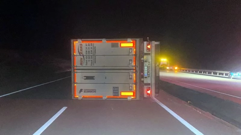 100 karayolunda kontrolden çıkan tırın devrilmesi sonucu meydana gelen trafik kazasında sürücü yaralandı.