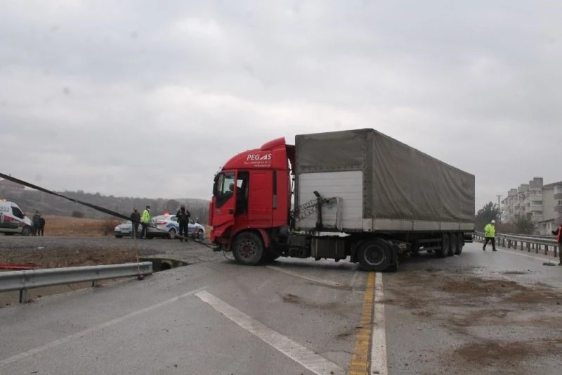 Kastamonu’nun Tosya ilçesi D-100 Karayolu’nda bariyerlere çarpan tırın makaslaması sonucu, yol kısa süre trafiğe kapalı kaldı.