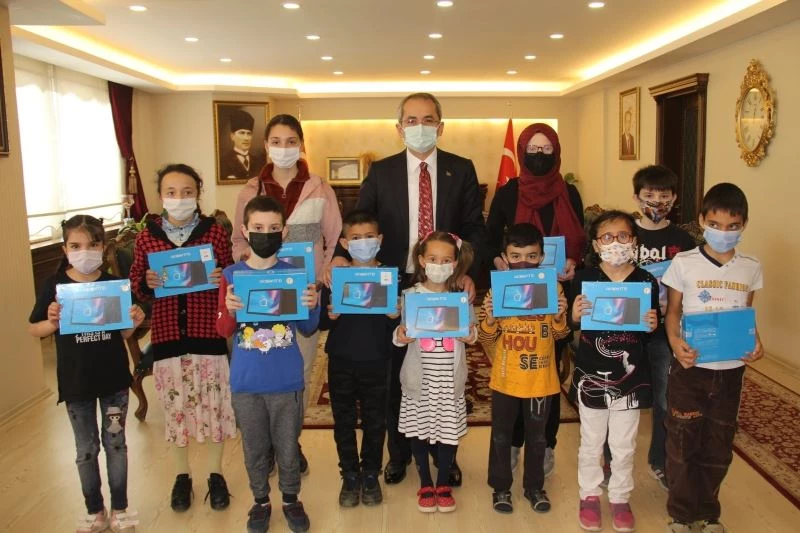 Tosya Kaymakamlığı uzaktan eğitim için öğrencilere 13 adet tablet dağıtımı yaptı.