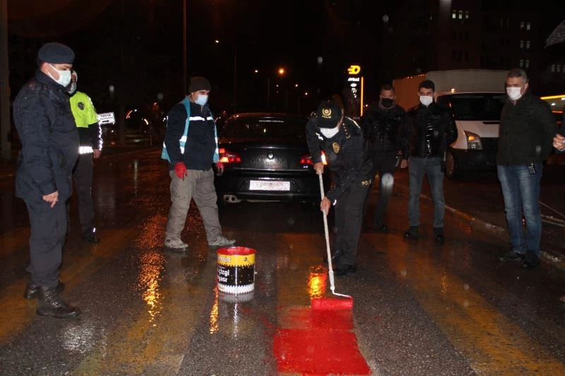 Kastamonu’nun Tosya ilçesinde yaya geçitlerinde kırmızı çizgi uygulaması başlatıldı.