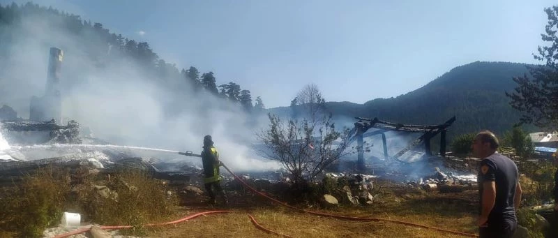 Yangında, altı ahır, üstü ev olarak kullanılan 2’şer katlı 2 ahşap yayla evi yanarak küle döndü.