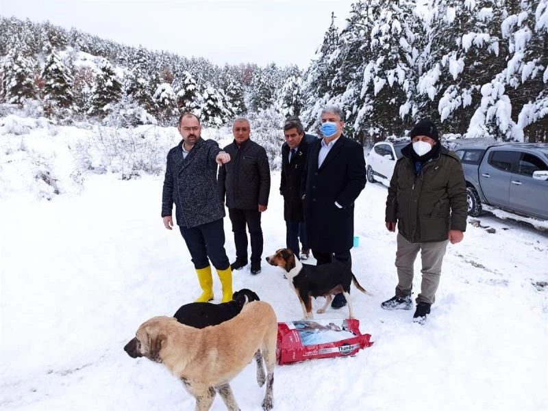 Tosya Kaymakamı Ahmet Ferhat Özen, Belediye Başkanı Volkan Kavaklıgil ve ilgili kurum müdürleriyle birlikte sokak hayvanlarına mama bıraktı.