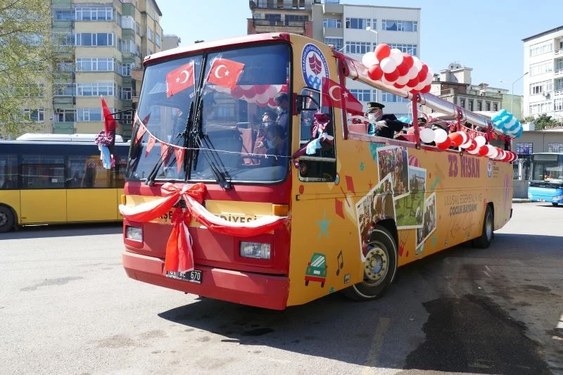 Trabzon’da ait üstü açık otobüsle Trabzon’un sokaklarını gezen Büyükşehir Belediyesi bando takımı ve animasyon ekibi, tüm çocukların bayramını kutladı.