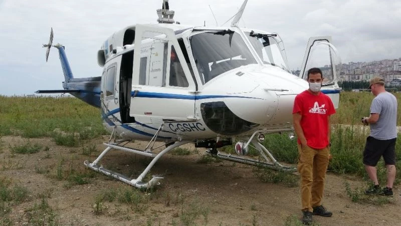 Trabzon’da dolgu alanına inen helikopter paniğe neden oldu
