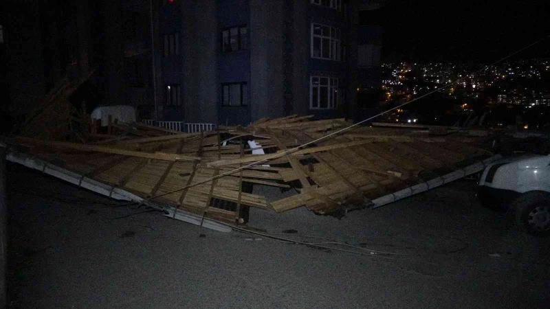 Trabzon’da şiddetli fırtına ağaçları yerinden söktü, çatıları uçurdu