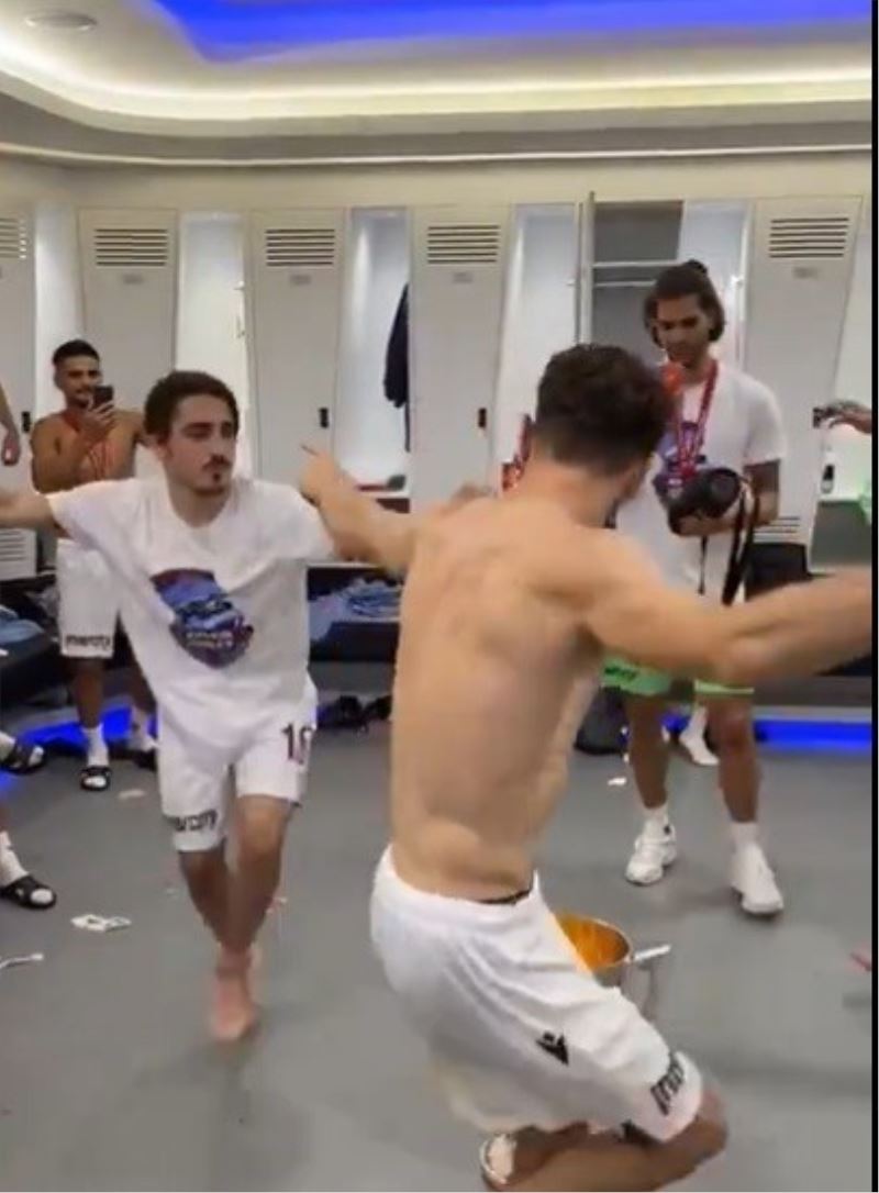 Takımın Trabzon’lu oyuncuları Abdulkadir Ömür, Abdulkadir Parmak ve Hüseyin Türkmen’in yaptıkları kolbastı şova takım arkadaşları da eşlek etti.