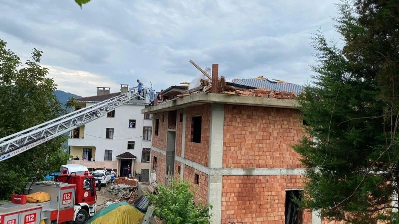 Trabzon’un Of ilçesinde inşaat halindeki bir evin çatısına yıldırım düştü: 2 ağır yaralı
