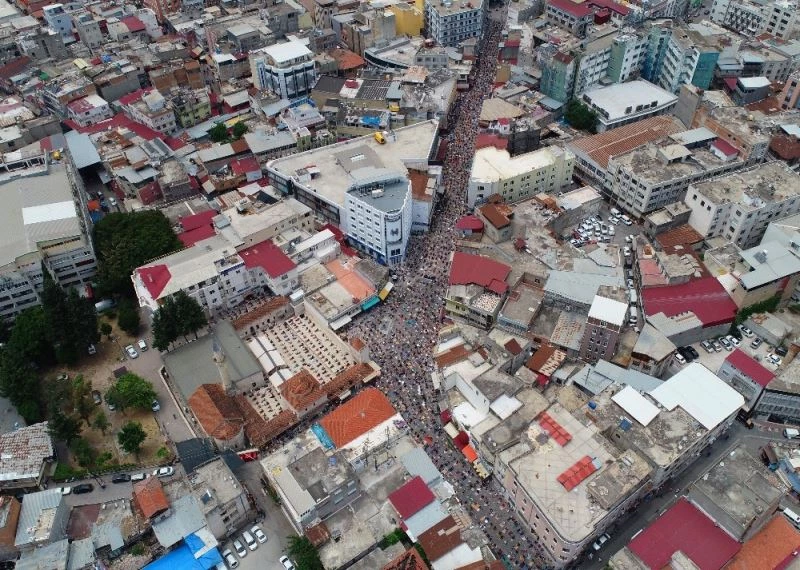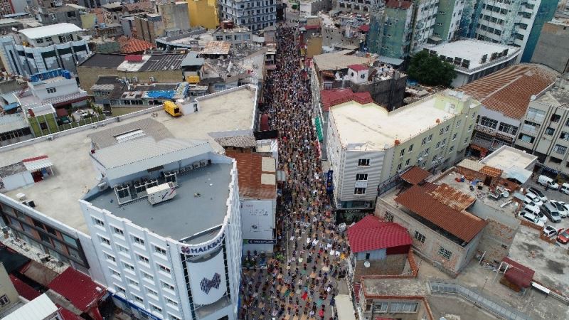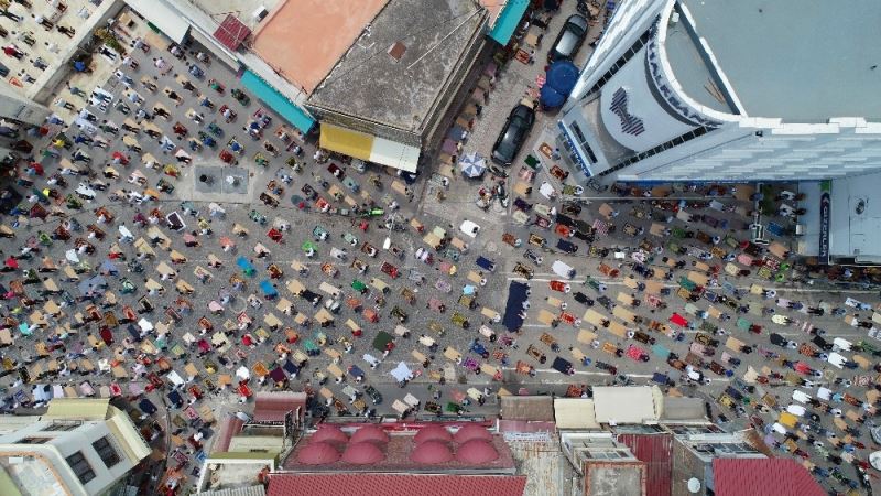 Ezanın okunmasıyla birlikte namazını kılan vatandaşlar daha sonra caddeden ayrıldı. Caddede namaz kılanlar drone ile havadan görüntülendi.