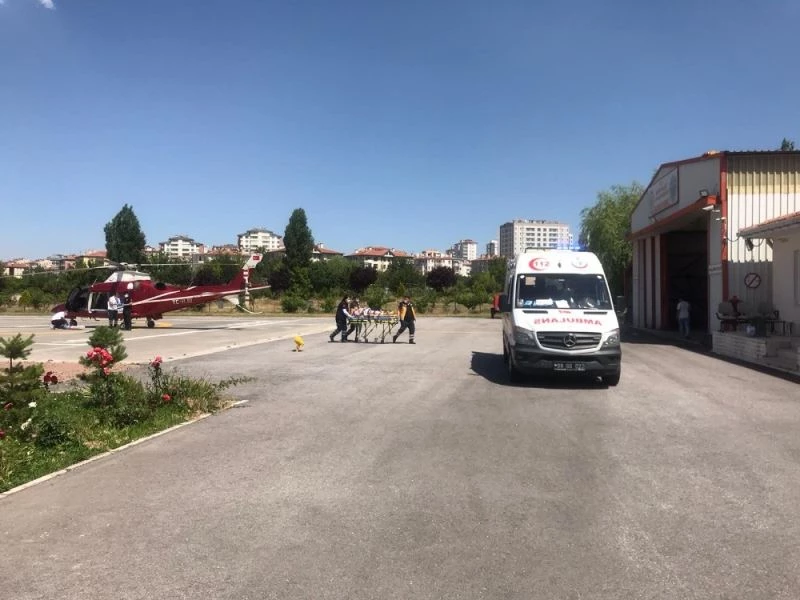 Trafik kazasında yaralanan kadın, ambulans helikopterle şehir merkezine getirildi