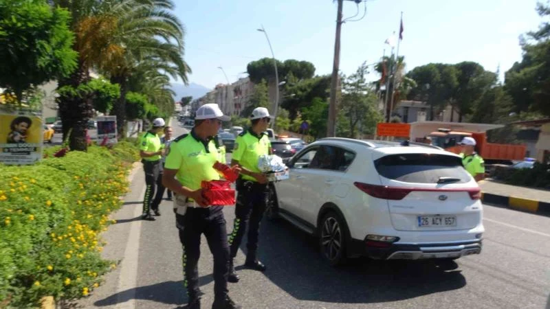 Trafik polisleri Marmaris’te hem uyardı, hem çikolata dağıttı