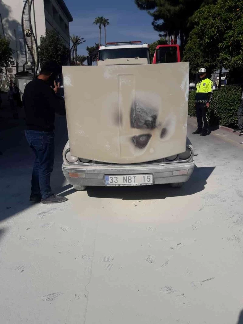 Olay, İsmetpaşa Mahallesi Mersin Caddesi üzerinde meydana geldi. H.Ç. idaresindeki 33 NBT 15 plakalı otomobil seyir halindeyken motor kısmından birden dumanlar yükseldi. Sürücü aracı durdurarak inerken, trafik polisleri araçlarında bulunan yangın tüpleri ile alevlere müdahale etti. Polislerin müdahalesiyle araçta yangın büyümeden söndürüldü. Olayda şans eseri yaralanan olmadı.