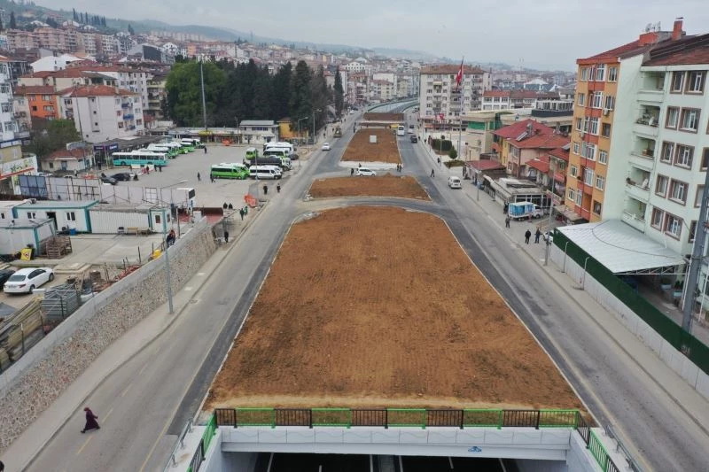 Trafik sorununa çözüm olan köprülü kavşakta çevre düzenlemesi