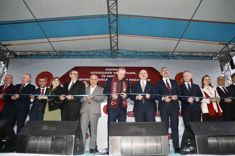 Törende Cumhurbaşkanı Recep Tayyip Erdoğan, Ulaştırma ve Altyapı Bakanı Adil Karaismailoğlu ile Gaziantep Büyükşehir Belediye Başkanı Fatma Şahin’in yanı sıra Tarım ve Orman Bakanı Vahit Kirişci, Gaziantep Valisi Davut Gül ile il protokolü bulundu.