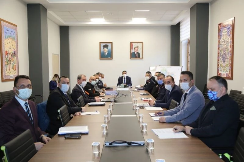 Kış mevsiminde olası trafik kazalarının önüne geçilmesi, vatandaşın can ve mal güvenliğinin sağlanmasına ilişkin alınan güvenlik tedbirleri ile kurumlar arası koordinasyonun artırılmasına yönelik öneriler, Vali Ali Çelik başkanlığında istişare edildi.