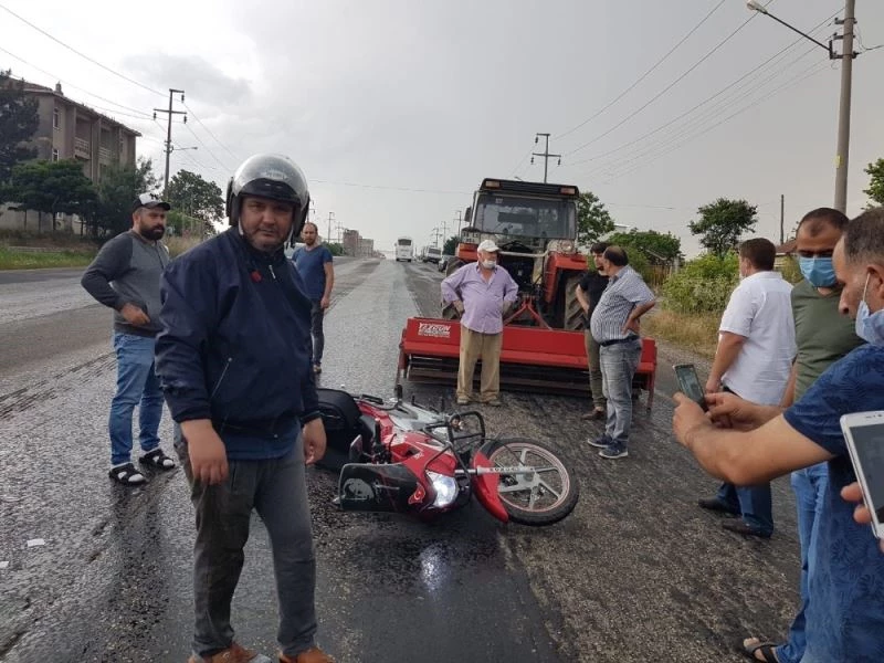 Tekirdağ’ın Muratlı ilçesinde traktör ile motosikletin çarpışması sonucu meydana gelen trafik kazasında 1 kişi yaralandı.