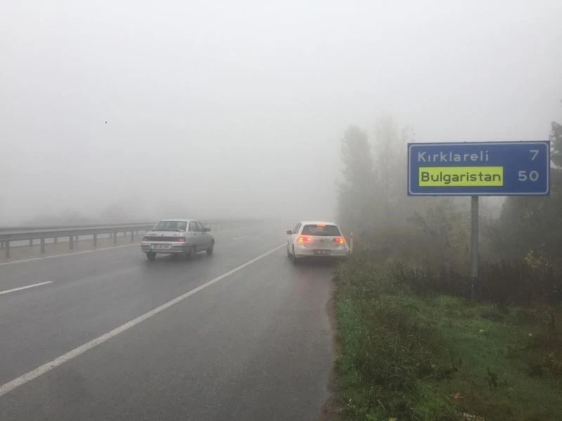 Trakya’da etkili olan yoğun sis sürücülere zor anlar yaşattı