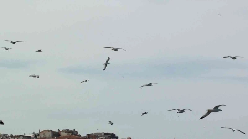 Marmara Denizi’nin Tekirdağ kıyılarında etkisini gösteren fırtına sebebiyle denizde dalgalar oluşurken, sert esen rüzgar sebebiyle martıların uçmakta zorlandığı görüldü.