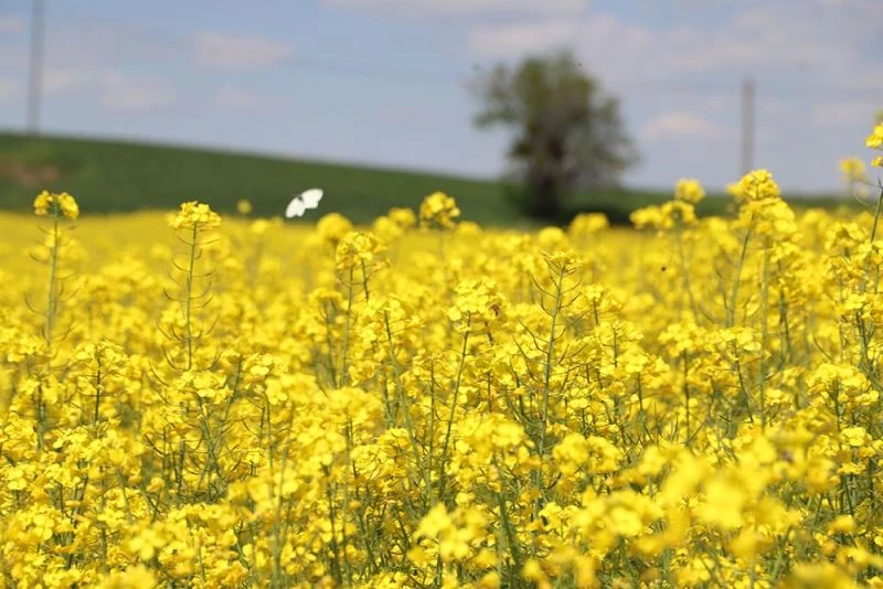 Trakya çiftçisinin ayçiçeğinden sonra alternatif ürün olarak gördüğü ve son yıllarda ekimini arttırdığı kanola tarlaları, sarıya boyanan rengiyle görsel şölen sunuyor.