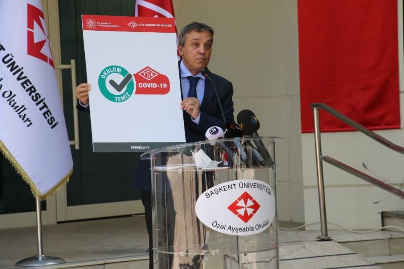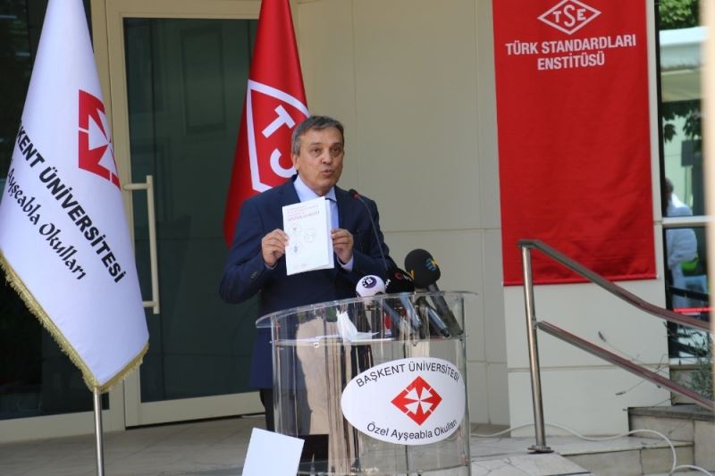 Başkent Üniversitesi Rektörü Prof. Dr. Ali Haberal her şeyin başının sağlık olduğunu hatırlatarak, “Alacağımız tedbirleri ve yaşamımızı sürdürmek zorunda olduğumuzu hatırlamamız gerekiyor. Başkent Üniversitesi olarak TSE ile birlikteliğimiz üniversitemizin kuruluş tarihlerine kadar uzanıyor. Üniversitemizin kurucusu Mehmet Haberal’ın önderliğinde 1994 yılında ilk defa üniversitemizde ISO-9000 Belgesi alarak çalışmalara başladık. Bu aşamada ise artık sağlığın ön planda olması ve eğitim başlamasına yakınlaştığı bu tarihlerde ise belirli kurallarımızı yeniden gözden geçirmemiz gerekti. TSE’nin hazırladığı kriterlerin okullarımıza uygulanmasının ilk örneğini ‘Kolej Ayşe Abla Okullarında’ gerçekleştiriyoruz. Okullarımızın hazırlıklı olması gerekiyor. Hepimizin, velilerimizin içi rahat olması gerekiyor. Bu önemli bir uygulama modeli olacak. Bu model çocuklarımızı hem eğitiminde hem de yaşamında yol gösterecektir” diye konuştu.