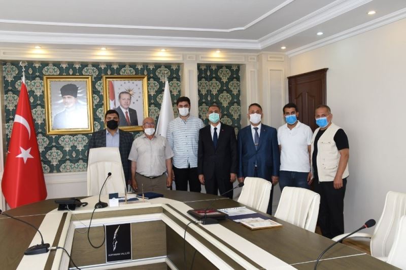 Türk Silahlı Kuvvetlerini Güçlendirme Vakfı Mersin Bölge Temsilcisi Faik Karadeniz, Vali Mahmut Çuhadar’ı makamında ziyaret etti. Vali Mahmut Çuhadar, Türk Silahlı Kuvvetlerini Güçlendirme Vakfı’na yaptığı maddi ve manevi katkılarından dolayı TSKGV tarafından adına düzenlenen altın madalya ve beraatını merhum hayırsever Abuzer Yıldırım’ın oğlu Muhammed Yıldırım ile Metin Karakuş’a verdi.