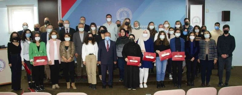 TÜBİTAK Bilim İnsanı Destek Programları Başkanlığı tarafından yürütülen 2209-A Üniversite Öğrencileri Araştırma Projeleri Destekleme Programı Tarafından yürütülen ’Üniversite Öğrencileri Araştırma Projeleri Destekleme Programı ve 2247-A Ulusal Lider Araştırmacılar Programı kapsamında bilimsel değerlendirme sonuçlarına göre, proje desteği almaya hak kazanan öğrenciler için Teşekkür Belgesi Takdim Töreni düzenlendi. Tahir Karauğuz konferans salonunda yapılan takdim töreninde Rektör Yardımcısı Prof. Dr. Kemal Büyükgüzel, Teknoloji Transfer Ofisi (TTO) Koodinatörü Öğr. Gör. Mesut Karakoca, proje desteği alan öğrenciler ve akademik danışmanları hazır bulundu.