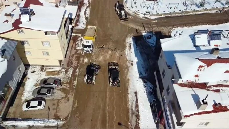 ADANA - Adana'nın Tufanbeyli ilçesinde belediye ekiplerinin cadde ve kaldırımlardaki kar temizleme çalışmaları devam ediyor.