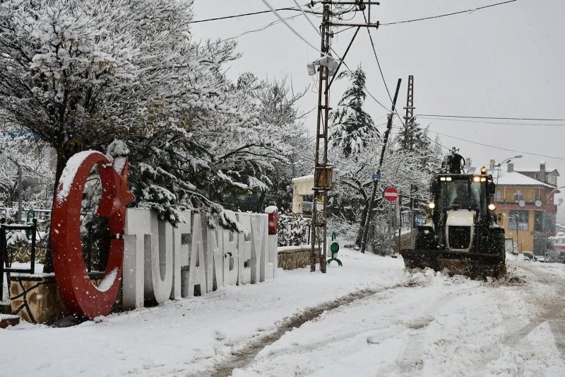 Kar yağışı nedeniyle eğitime 1 gün ara verilen ilçede Tufanbeyli Belediyesi iş makineleri karayolları ekipleri ile birlikte kar küreme ve yol açma çalışmalarını hızla sürdürüyor. İlçe genelinde merkezde 30 santimetreyi bulan kar kalınlığı kırsalda mahallelerde 50 santimetreye ulaştı.