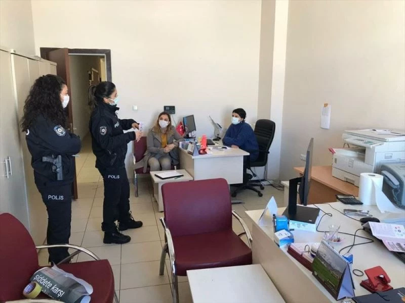 Polis ekipleri ilçede kamu kurum ve kuruluşları ile özel işletmelerde çalışan kadınları ziyaret ederek uygulama hakkında bilgiler verdi.