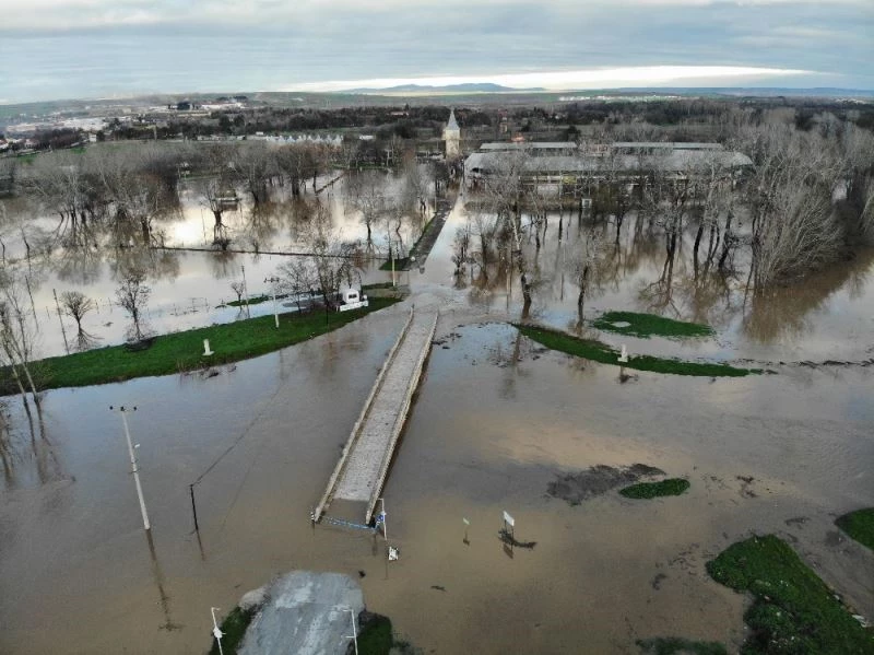 Edirne’de 2 gündür etkili olan sağanak yağışlar sonrası kaynağını Bulgaristan’dan alan Tunca Nehri’nde su debisi yaklaşık 20 kat artarak kırmızı alarm seviyesine ulaştı. Nehrin taşmasıyla Sarayiçi Er Meydanı da sular altında kaldı.