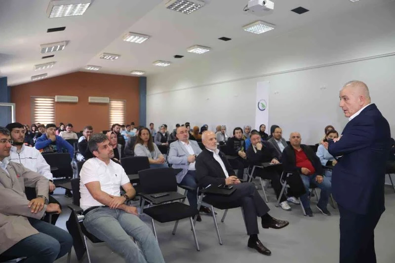 Tuncay Şahin, pandemi ve etkileri, pandemi sonrası yenilikler, işletmelerde dijitalleşmenin önemi, yok olacak meslekler ve yeni ortaya çıkacak meslekler, girişimciliğin önemi, Düzce yatırım stratejilerimiz, gelecekteki stratejik sektörler gibi konu başlıklarında öğrencilere faydalı ve kullanışlı bilgiler verdi.
