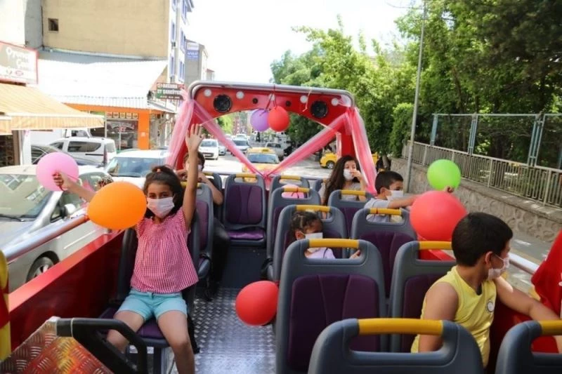 Tunceli’de 4 saatliğine dışarıya çıkan çocuk ve gençler üstü açık tur otobüsüyle şehir turu atarak doyasıya eğlendi.