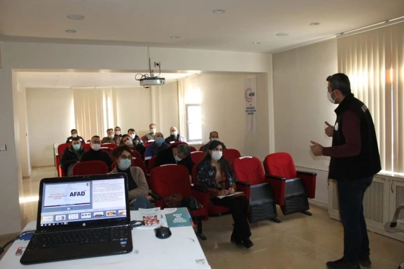Tunceli’de İl Afet ve Acil Durum (AFAD) Müdürlüğü tarafından kurumlara ’Afet Eğitim Yılı Etkinlikleri’ kapsamında eğitim verildi.