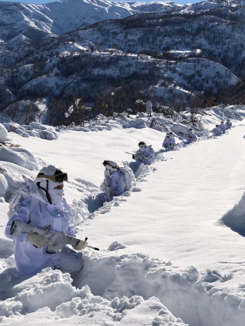 Tunceli’de Eren Kış-6 Mercan Dağları Şehit Jandarma Uzman Çavuş Burak Tortumlu operasyonu zorlu kış şartları altında devam ediyor.