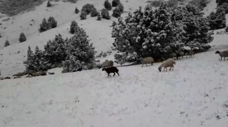 Tunceli’nin Pülümür ilçesinin yüksek kesimlerinde kar, yağışı etkili oldu, 5 gün önce yaylaya çıkan sürü sahipleri şaşırdı.