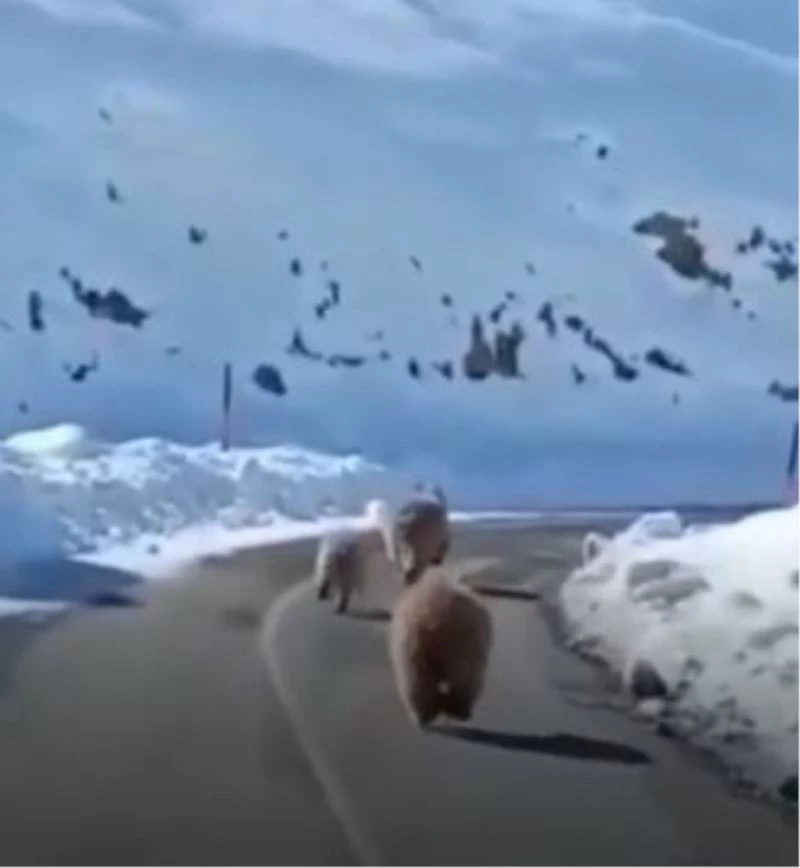 Tunceli’nin Pülümür ilçesinde kış uykusundan erken uyanmış ve karayoluna inerek yiyecek arayan bir anne ve 2 yavru boz ayı cep telefonu kamerasıyla görüntülendi. Bir vatandaş tarafından görüntülenen ayılar, bir süre karayolunu takip ettikten sonra yeniden karlı alana giderek gözden kayboldu.