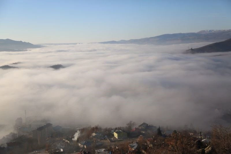 Tunceli’de etkili olan sis nedeniyle şehir adeta kayboldu, ortaya kartpostallık görüntüler de ortaya çıktı.