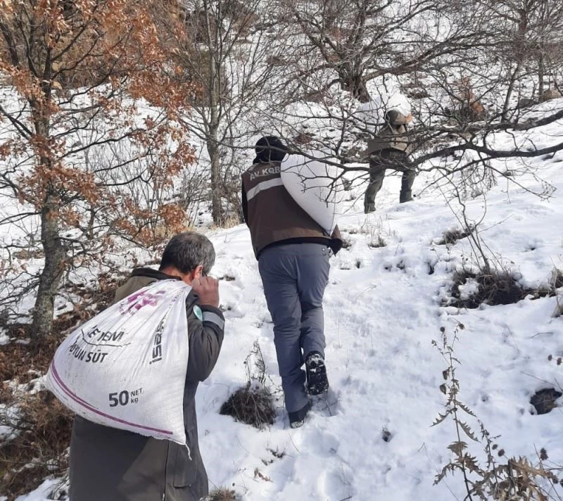 Tunceli’de yaban hayvanları ve kuşlar için doğaya 6 ton yem bırakıldı.