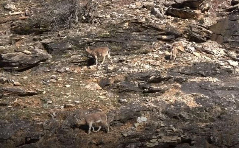 Tunceli’de koruma altında bulunan yaban keçileri görüntülendi.
