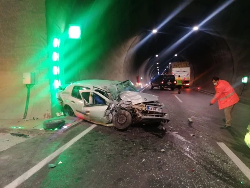 Malatya-Golbaşı Karayolunda direksiyon hakimiyetini kaybeden bir aracın tünel duvarına çarpması sonucu 1 kişi yaralandı.