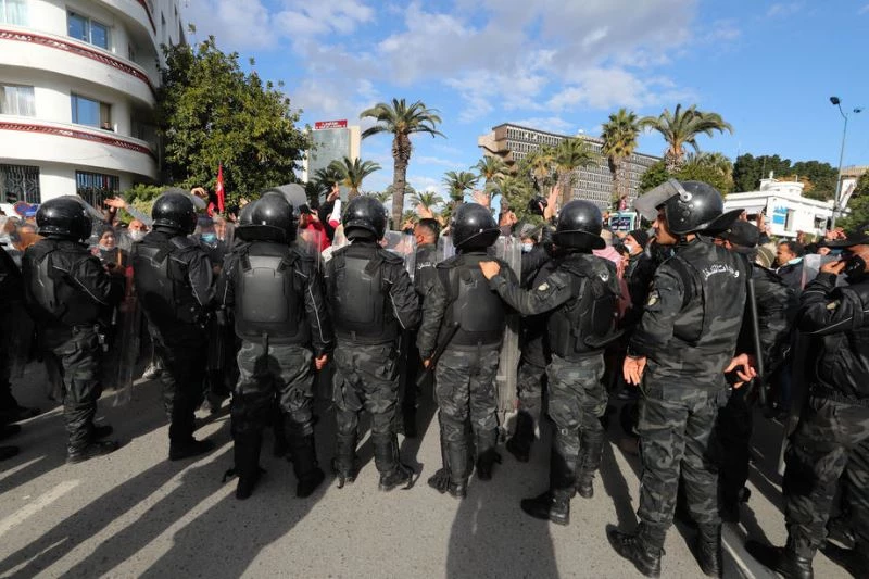 Tunus’ta Yasemin Devrimi’nin 11’inci yıldönümünde sokağa inen ve Devlet Başkanı Kays Said’i protesto eden göstericilere polis, tazyikli su ve biber gazı ile müdahale etti.