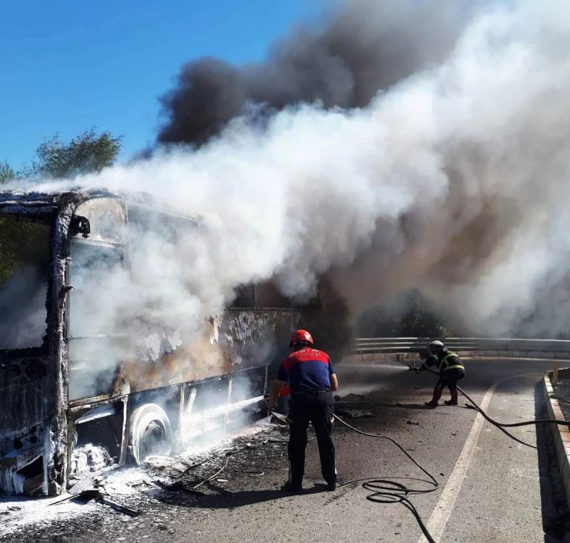 Edinilen bilgiye göre, Söke’den Kuşadası istikametine seyir halinde olan özel bir firmaya ait tur otobüsünde, çevre yolu Yaylaköy Mahallesi sınırları içerisinde yangın çıktı. Otobüs şoförü dumanları fark ederek, otobüsü yol kenarında durdurdu. Otobüs içerisinde bulunan yolcular araçtan indirilerek, güvenli bir bölgeye götürüldü. Olay yerine gelen Aydın Büyükşehir Belediyesi İtfaiye ekipleri otobüsü saran alevlere müdahalede bulundu. İtfaiye ekipleri yaptıkları çalışmalar ile alevleri söndürürken, otobüs küle döndü.