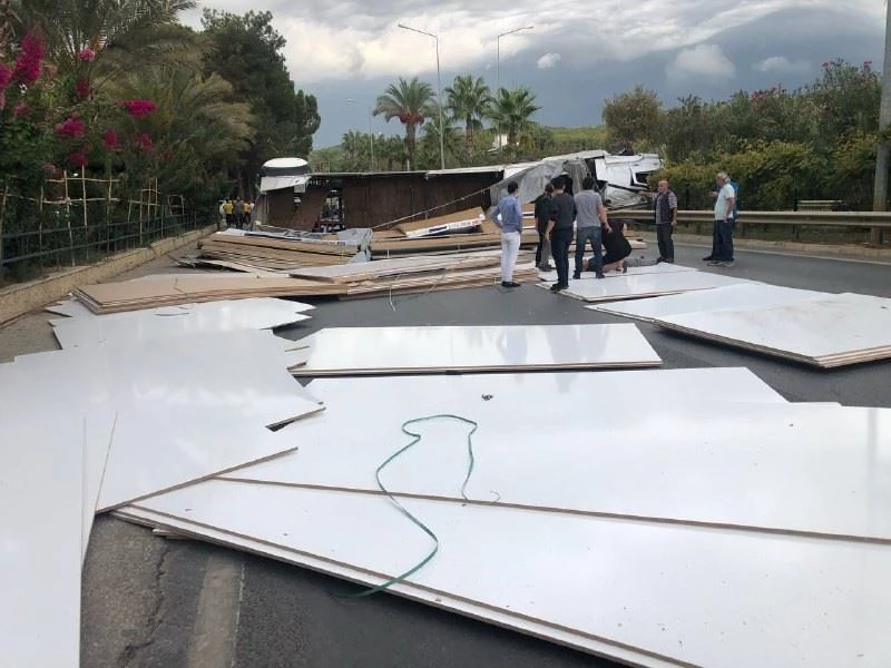 Edinilen bilgiye göre, kaza, saat 08.30 sırasında Alanya ilçesi İncekum Mahallesi D 400 karayolu üzerinde meydana geldi. Antalya’dan Alanya istikametine seyir halindeki sunta yüklü Adem Genç idaresindeki 41 AFH896 plakalı tır, iddiaya göre sürücüsünün direksiyon hakimiyetini kaybetmesi sonucu orta refüjdeki bariyere çarptı. Çarpmanın etkisiyle savrulmaya başlayan tırın kayan sunta yüklü dorsesi, sağ tarafta bir otele son yolcusunu indiren park halindeki 50 AAJ 159 plakalı Otokar marka tur otobüsüne çarptı. Çarpmanın ardından dorse yola devrildi ve suntalar yola saçıldı. Yan yatan dorse nedeniyle karayolu Alanya gidişine trafiğe kapandı. Kaza hemen 112 Acil Çağrı Merkezi’ne bildirildi. Tır sürücüsü vatandaşların yardımıyla kupadan çıkarıldı ve yerdeki suntaların üzerine alındı. 5 yıldızlı oteldeki turistler kazayı balkonlarından endişeli gözlerle izledi. Tır sürücüsü ambulansla özel bir hastaneye kaldırıldı. Jandarma trafiğin alternatif bir yoldan akışını sağladı. Yola saçılan suntalar vinç yardımıyla başka bir araca yüklendi. Tırın kaldırılmasının ardından yol yeniden araç trafiğine açıldı. Kazadan kısa süre önce yolcuların otobüsten indirilmiş olması olası bir yaralanma ve can kaybını önledi. Tırın alev alma ihtimaline karşı itfaiye ekipleri köpükle soğutma çalışması yaptı. Jandarma kazayla ilgili inceleme başlattı.