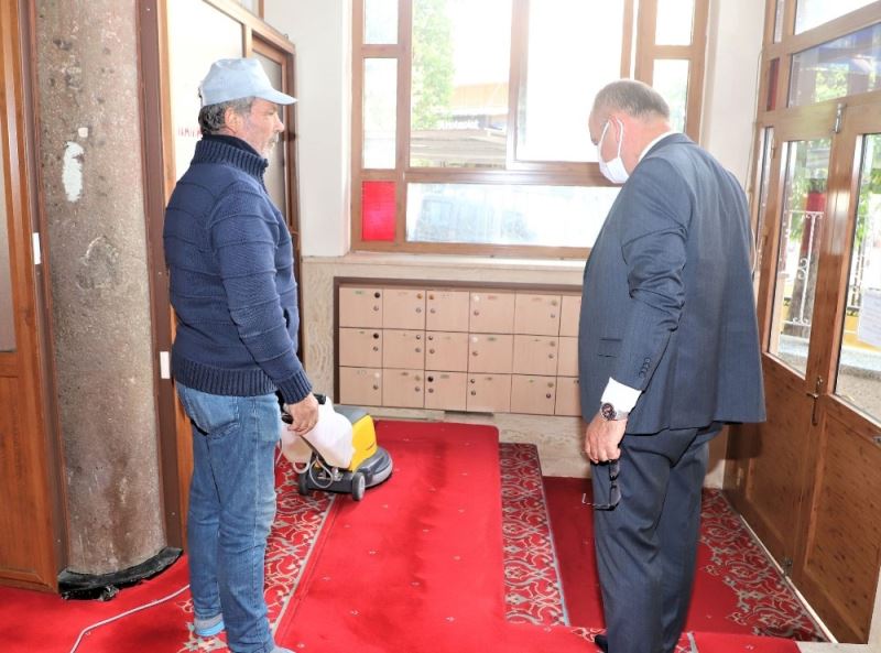 Turgutlu Belediyesi Temizlik İşleri Müdürlüğü ekipleri 29 Mayıs Cuma günü yeniden ibadete açılacak camiler ve ibadetlerin yapılacağı okul bahçelerinde dezenfekte çalışmalarına başladı. Turgutlu Belediye Başkanı Çetin Akın ise ekipler tarafından yürütülen dezenfekte çalışmalarını yerinde inceledi.