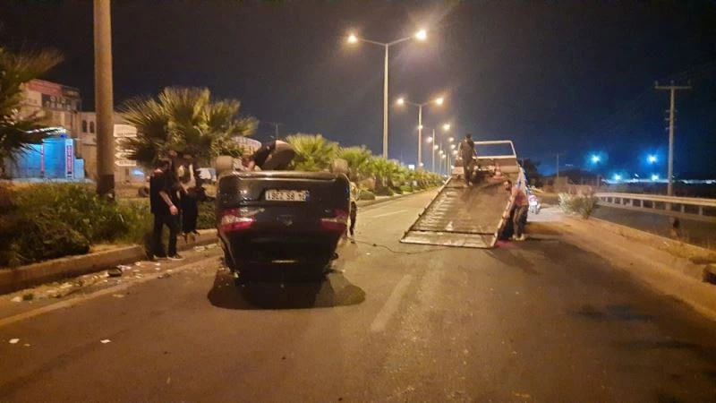 Manisa’nın Turgutlu ilçesinde kamyonla çarpışan otomobilin takla atması sonucu 3 kişi yaralandı.