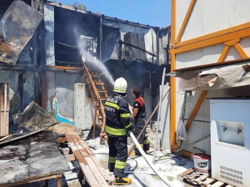 Muğla’nın Ortaca ilçesinde bir inşaat firmasına ait yaşam konteynerleri yanarak kullanılmaz hale geldi.