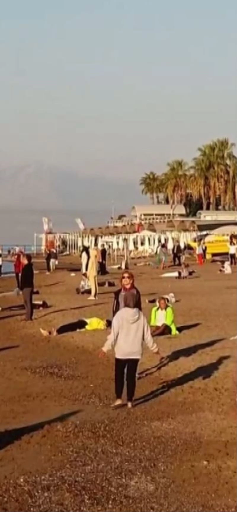 Antalya’nın turizm bölgesi Belek’te sabah sporu yapmak isteyen yüzlerce turist sahili tercih etti. Daha önceden sosyal medyadan haberleşerek organize olan turistler, sabah gün aydınlanırken birlikte sahilde bir araya geldi. Turistlerden bazıları elleri ile spor hareketleri yaparken, bazıları da kumsal üzerinde uzanarak eşlik etti. Sabah sporunun yaklaşık 1 saat sürdüğü ve 2 bine yakın turistin katıldığı öğrenildi.